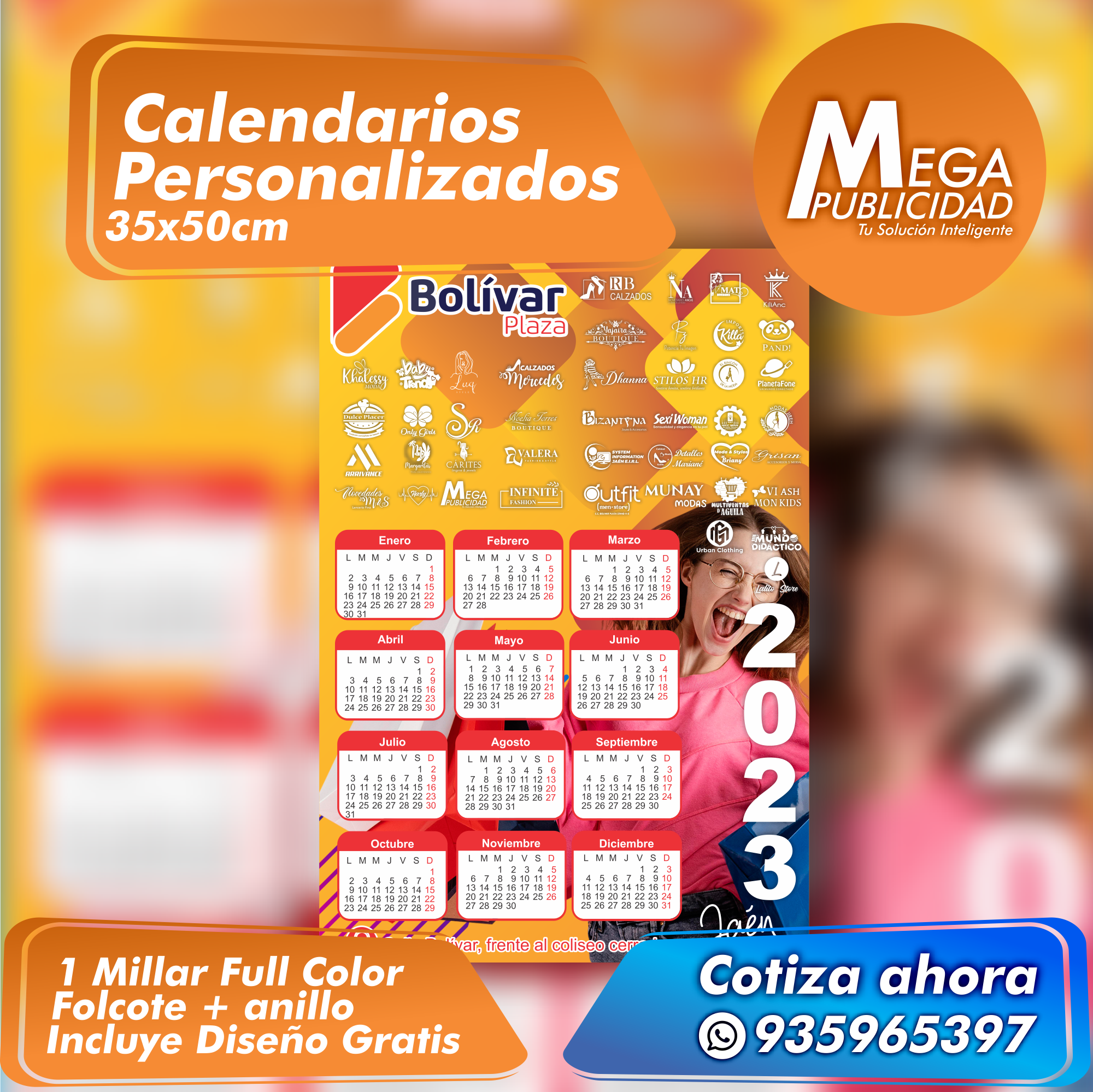 Ofrecemos calendarios de calidad con variedad de cromos, impresos en papel couche 90g y full color, y tu elijes si quieres que el espacio personalizable sea impreso a full color o a dos colores, también puedes elegir entre los tipos de calendario disponibles.