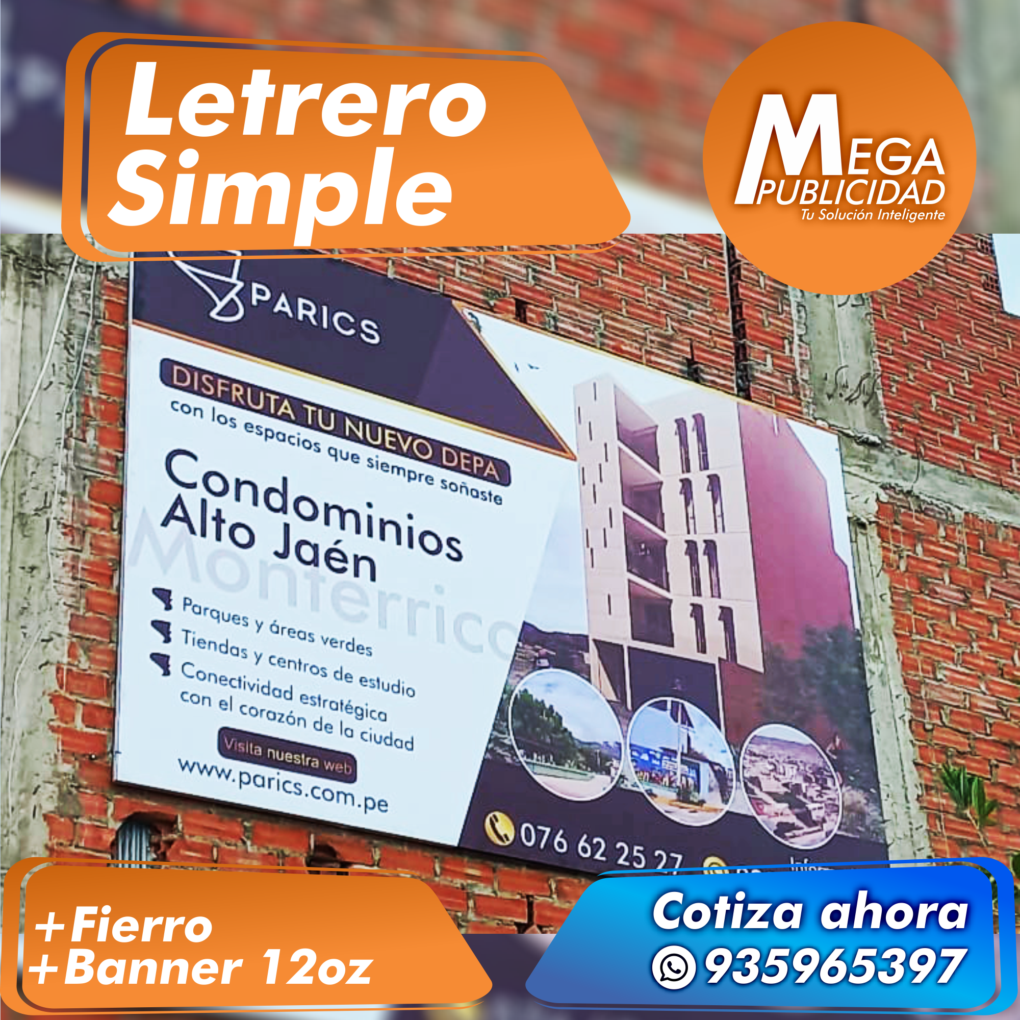 Letrero Simple con Marco de Fierro 3/4 y Banner de 12oz